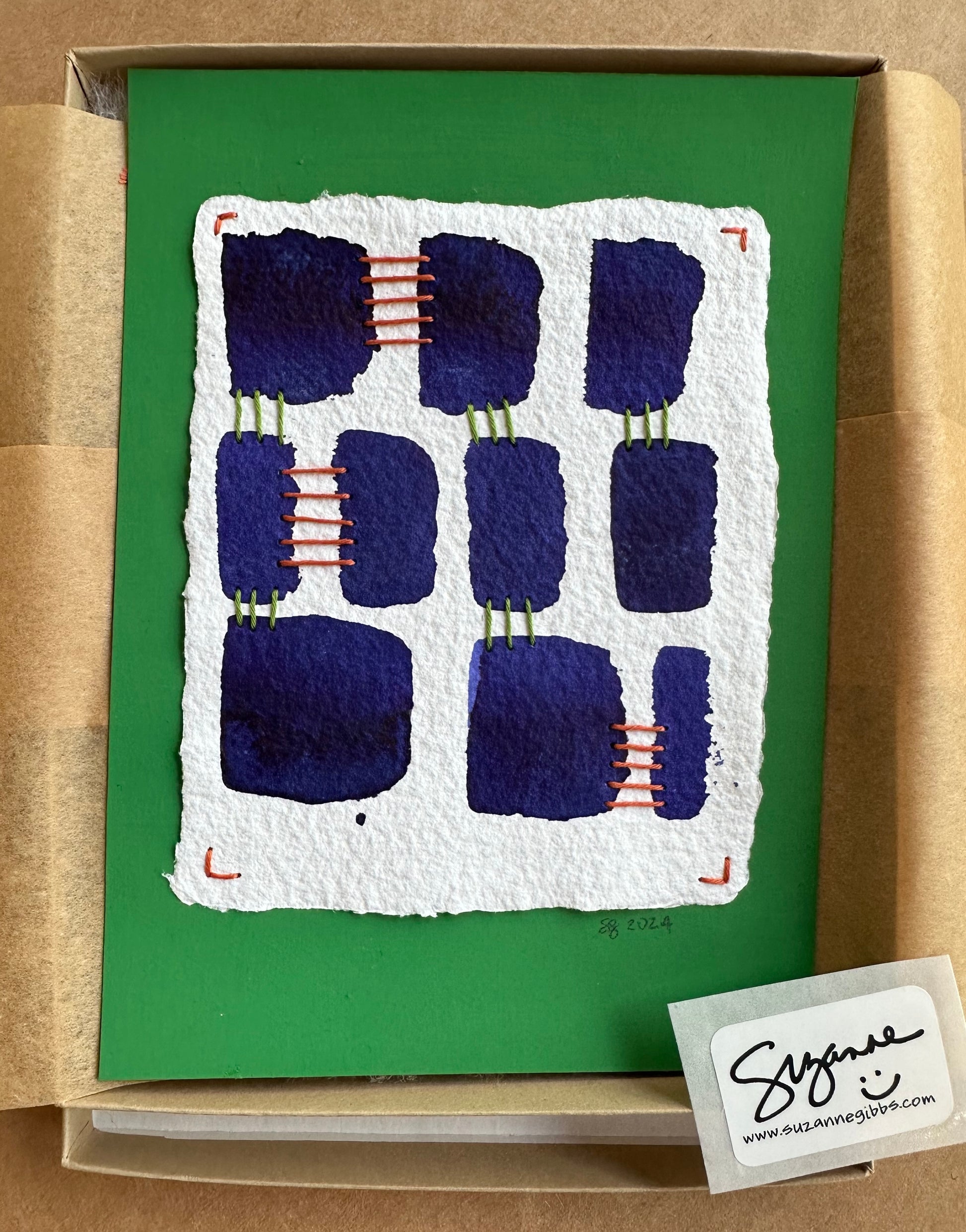 Stitch & So #31 Politicking, 2024, Watercolor, Flashe Paint, Sashiko Thread, on paper. Collage Painting. One in a series of paintings called the Stitch & So Series. Original Art.