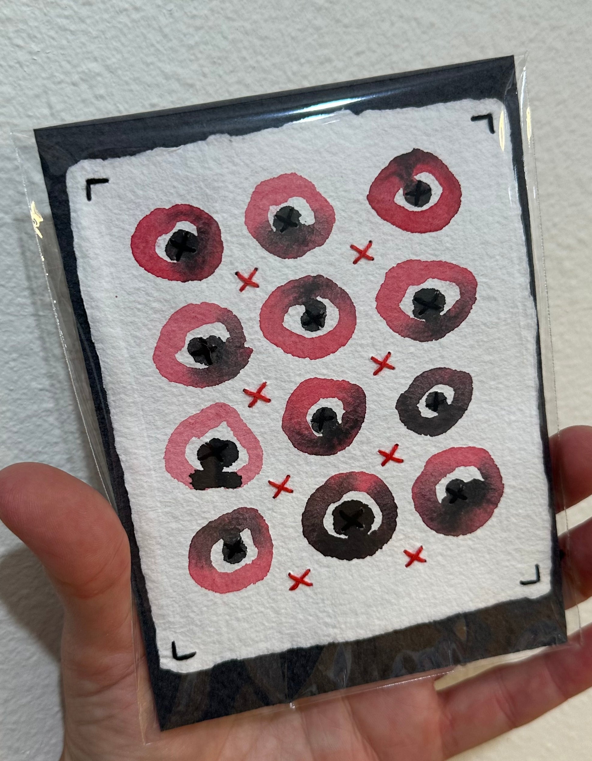 Stitch & So #19 Eye On You, 2024, Watercolor, Flashe Paint, Sashiko Thread, on paper. Collage Painting. One in a series of paintings called the Stitch & So Series. Original Art.