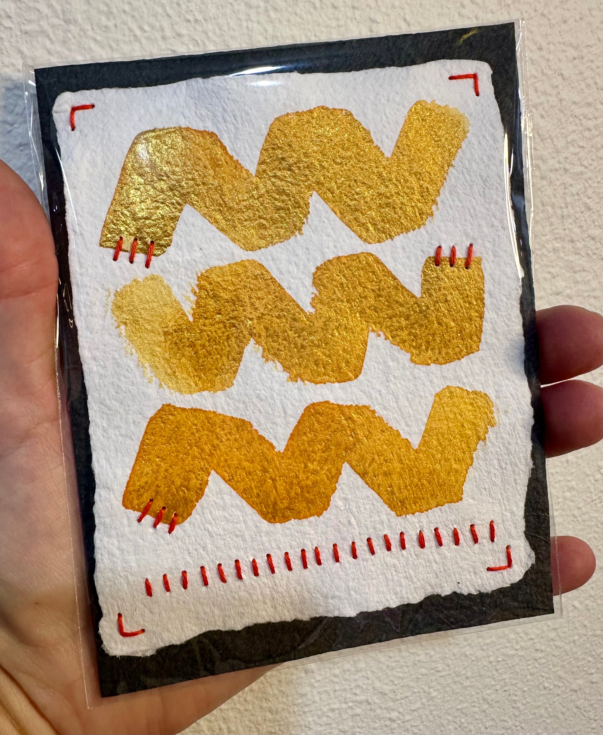 Stitch & So #29 Bear Claw, 2024, Watercolor, Flashe Paint, Sashiko Thread, on paper. Collage Painting. One in a series of paintings called the Stitch & So Series. Original Art.