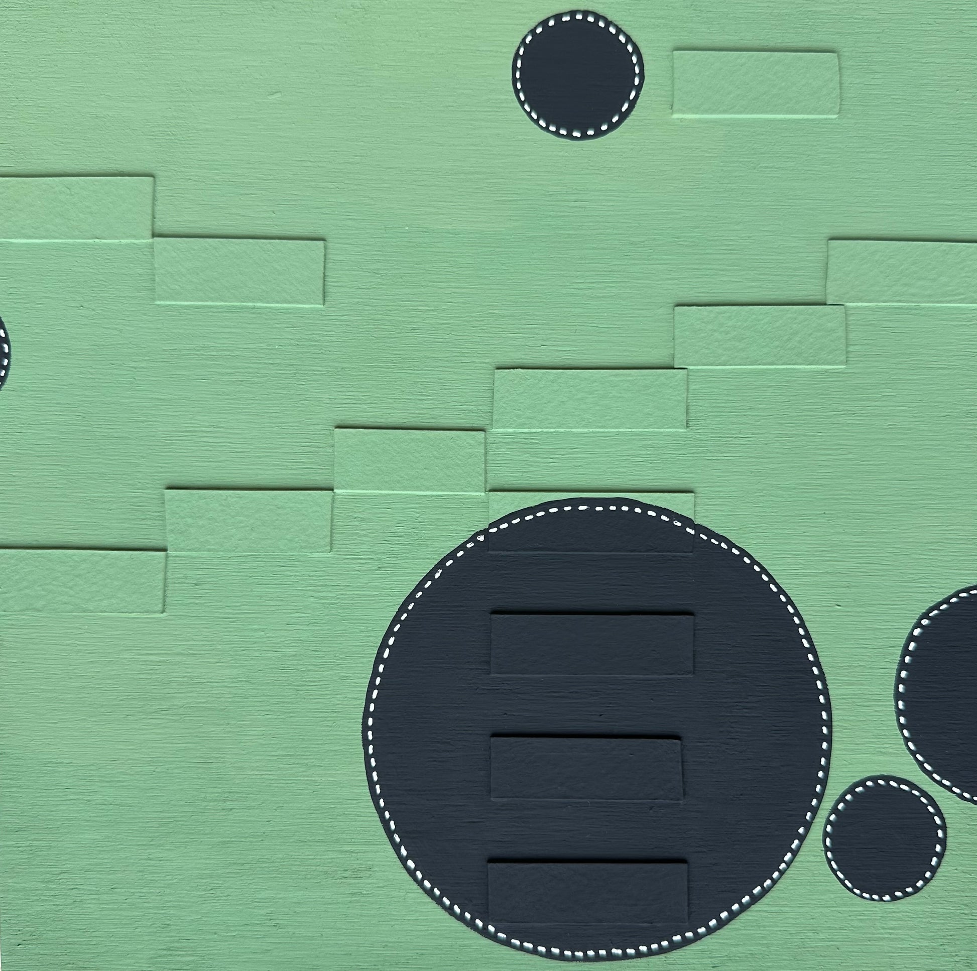 ©2024, Flash Paint, gel pen, and paper collage painting on cradled wood panel, 8 x 8 inches. Ready to hang. No frame needed. Edges are clean and detailed. Wired on back. Signed by artist on the front and back. Original art, one of a kind. Fine art. Contemporary Art. Abstract. Abstract. Minimal Art.