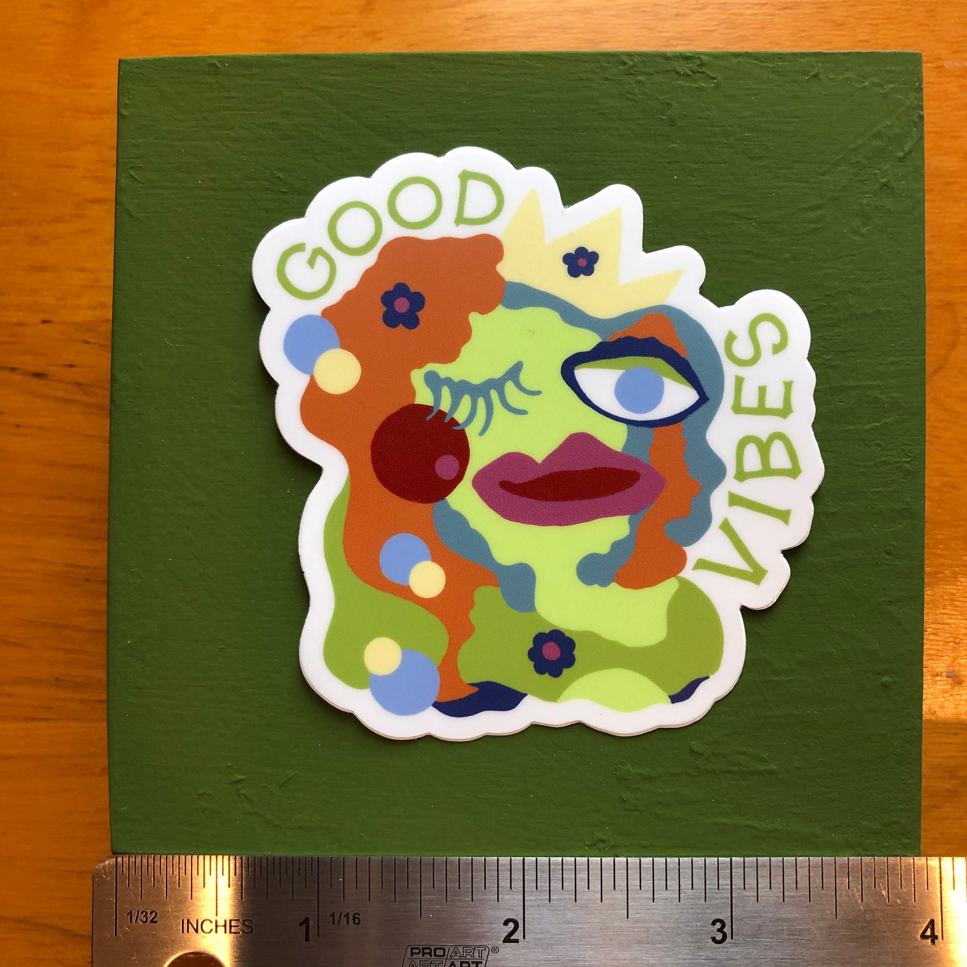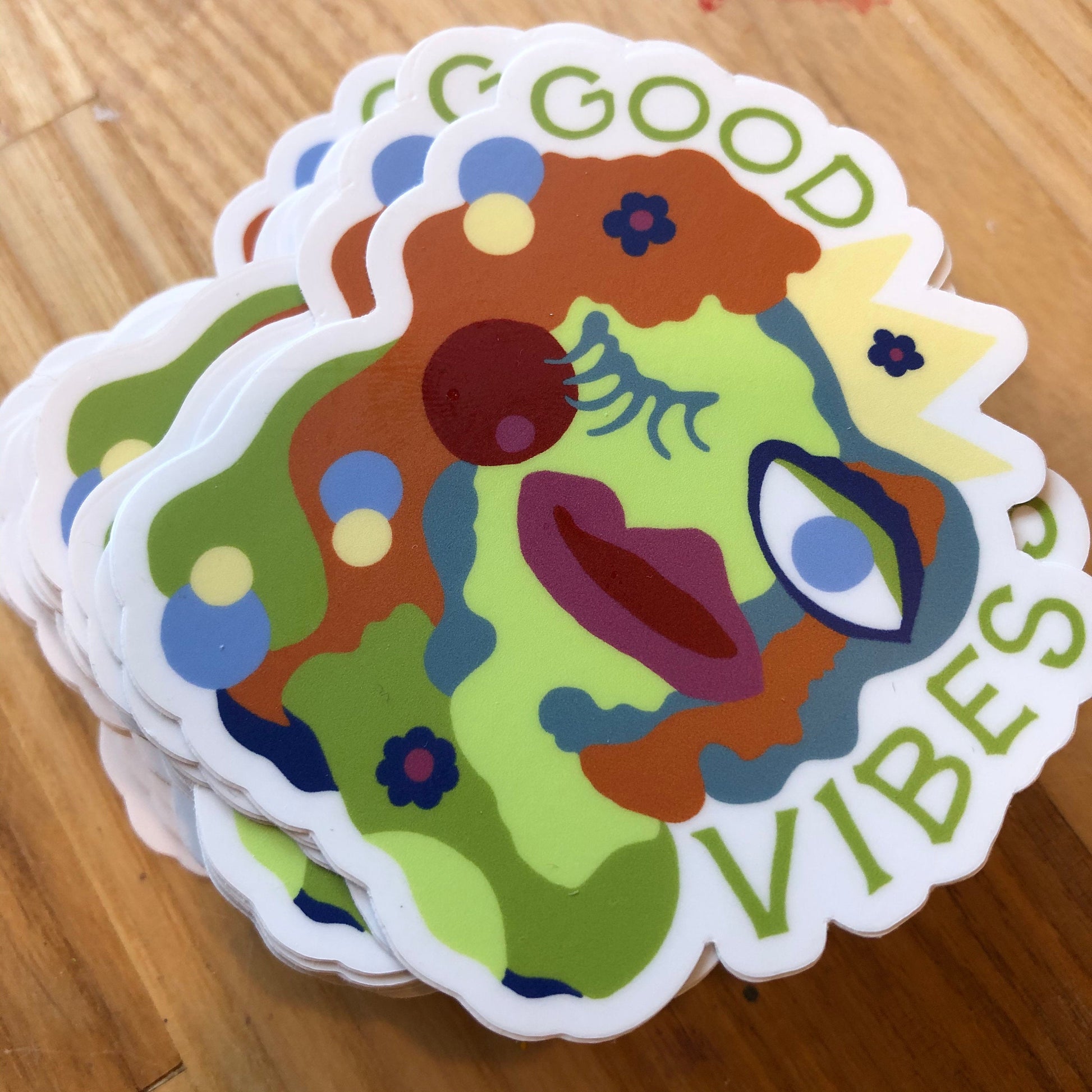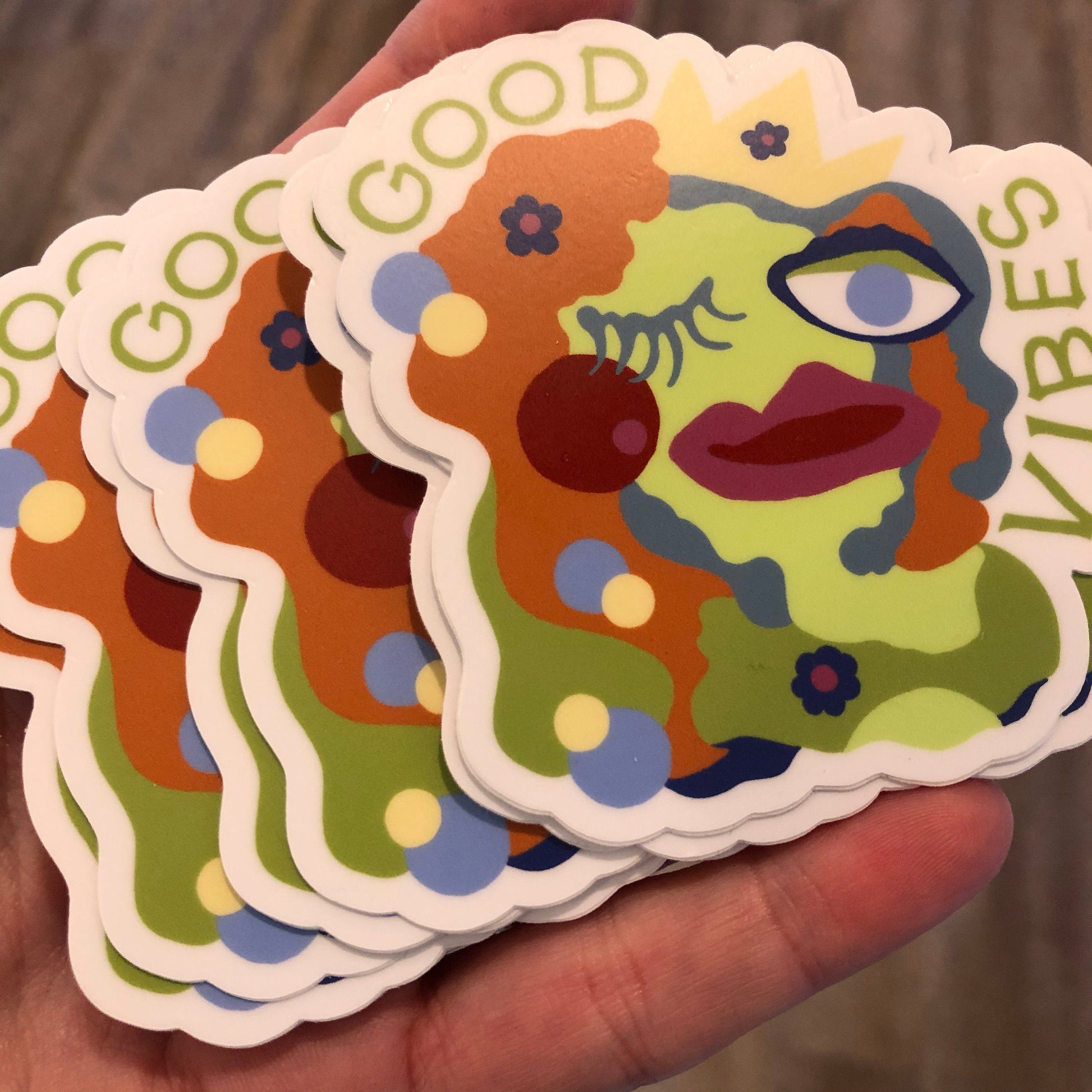 Good Vibes is a sticker derived from a painting in my Shhh, Say Nothing series. Excellent quality vinyl sticker. Permanent, place it where you need a reminder that life is good.