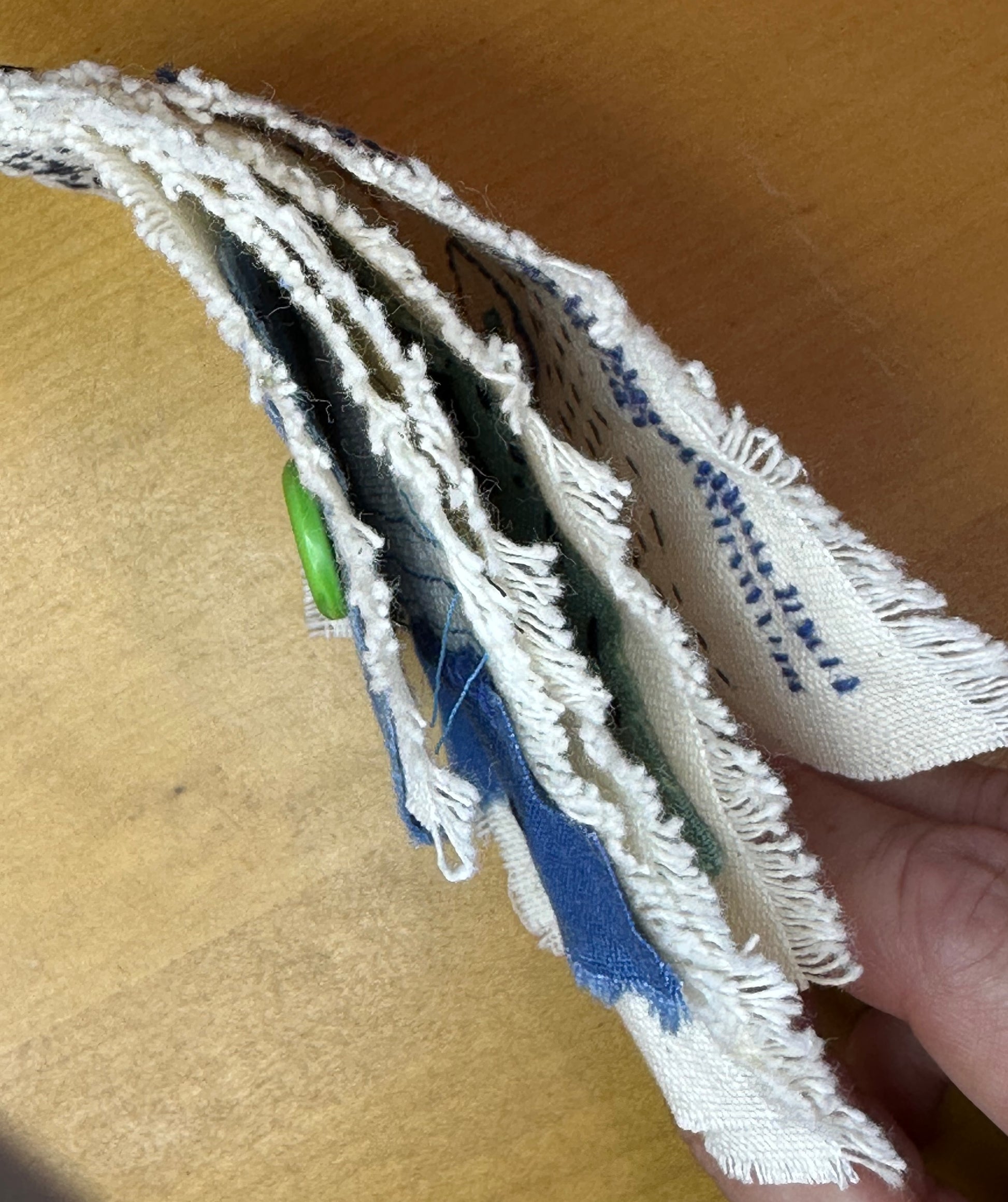 Handmade very small art by Suzanne. Calming meditation cloth book. May also be used to hold inspire new ideas then bury the book and grow your dreams.