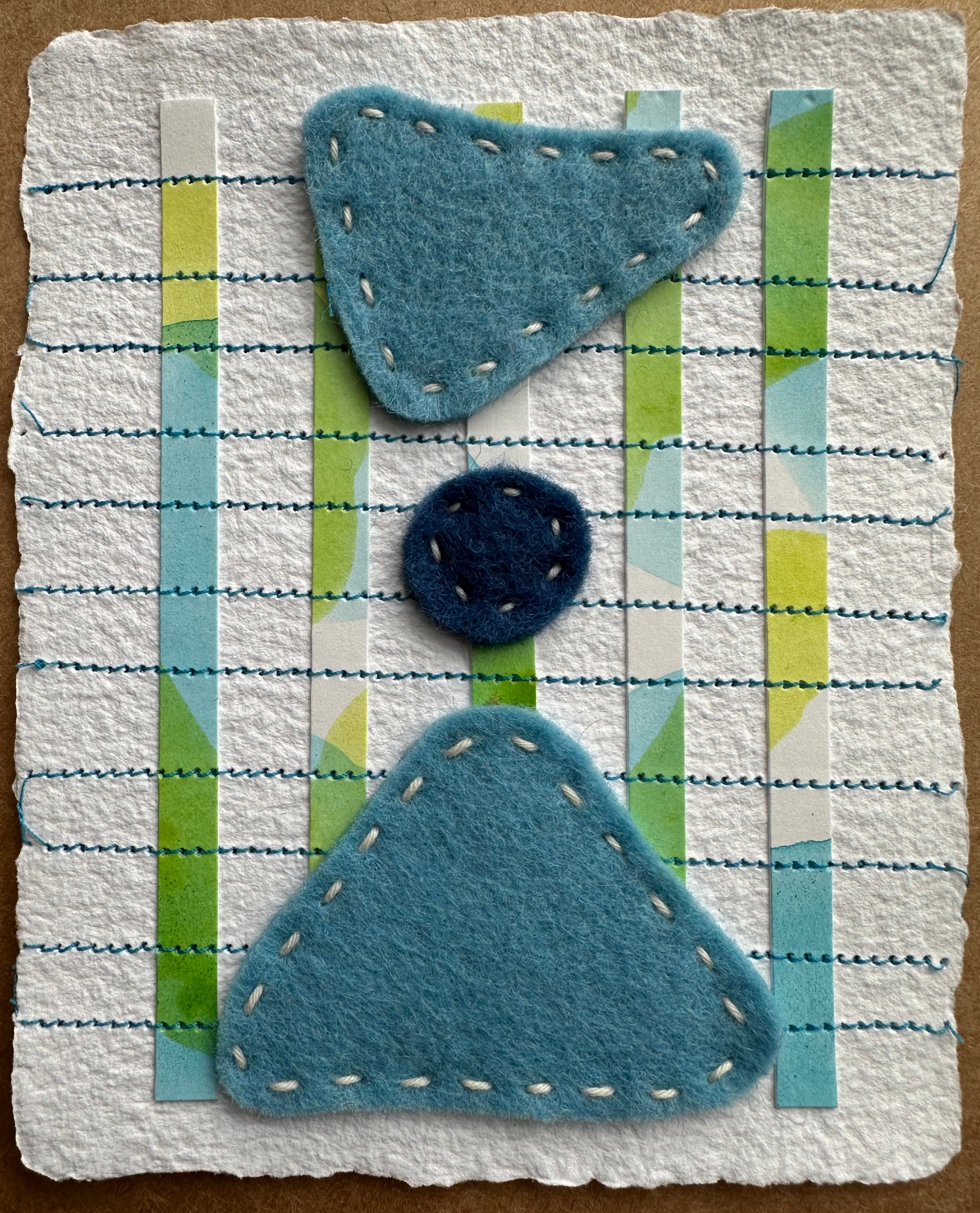 Happy Scrappy #10, 2024, Felt & Sashiko Thread on Handcrafted Paper. 5 x 4 inches.