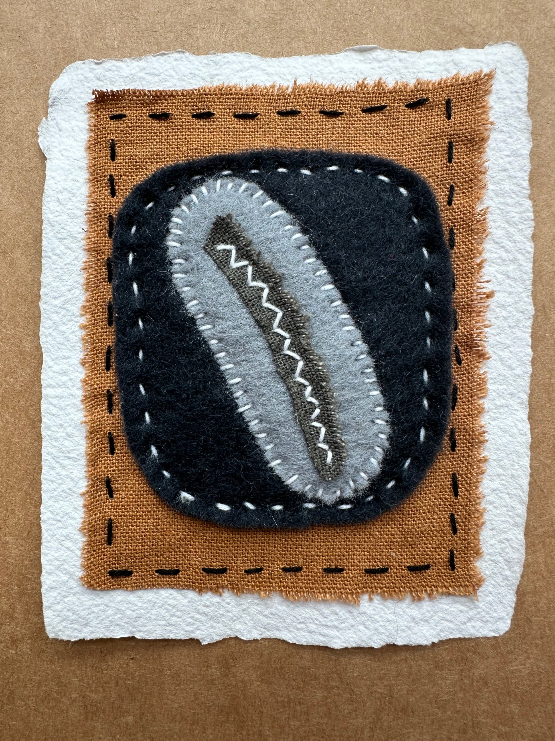 Happy Scrappy #19, 2024, Felt, Fabric, & Sashiko Thread on Handcrafted Paper. 5 x 4 inches.