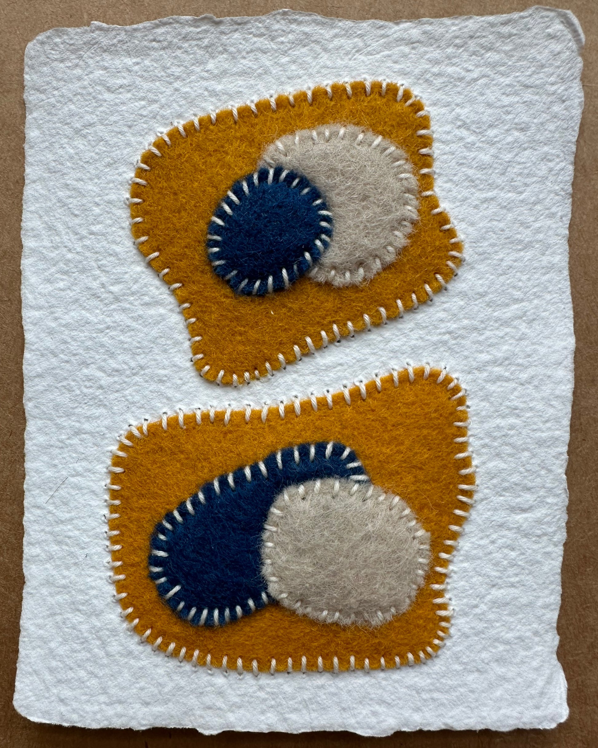Happy Scrappy #18, 2024, Felt, & Sashiko Thread on Handcrafted Paper. 5 x 4 inches.