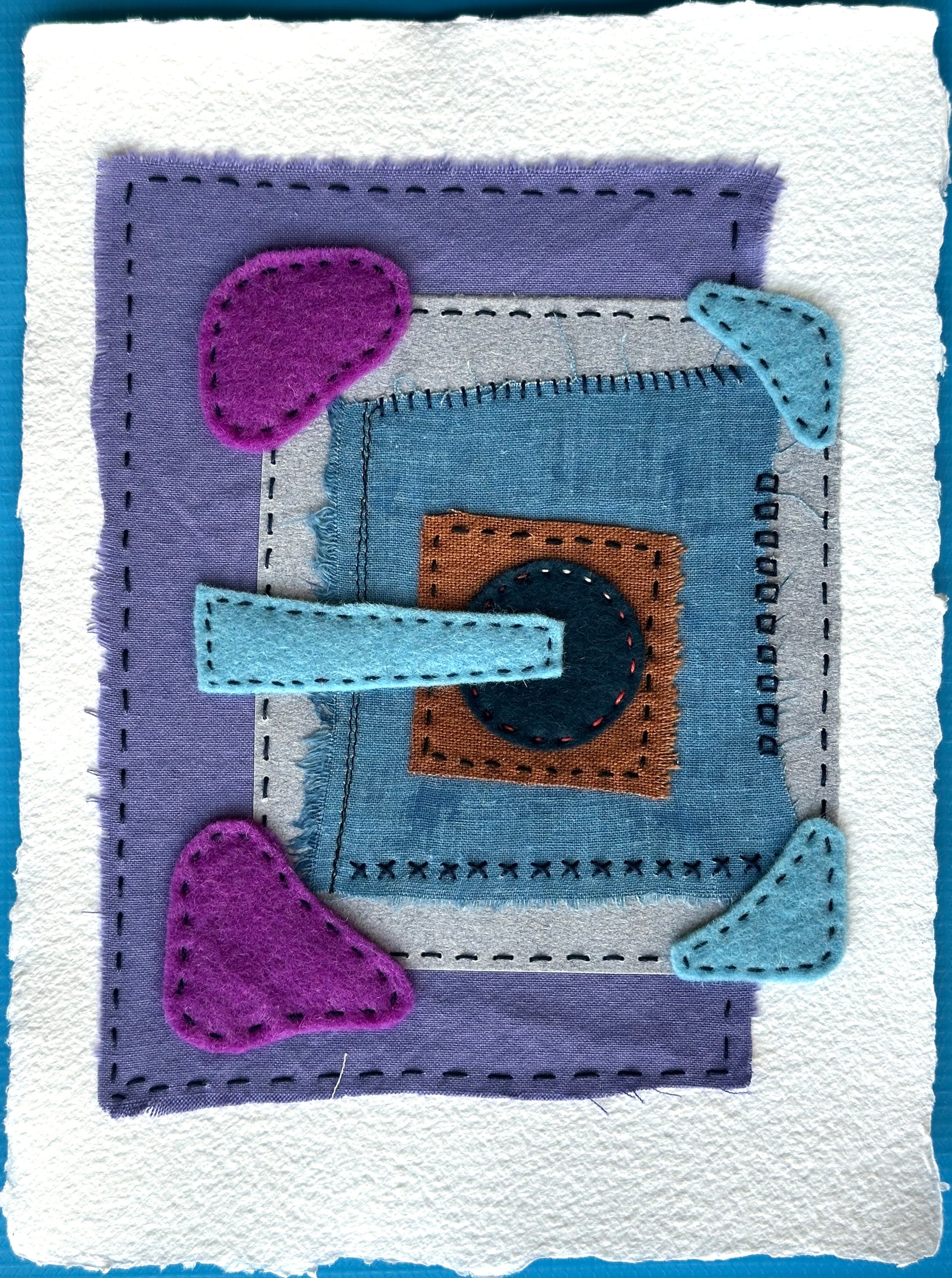 Happy Scrappy #27 Finding Center, Linen, Cotton, Felt, & Thread Art, Small Original Art 9.5 x 7 inches (unframed).