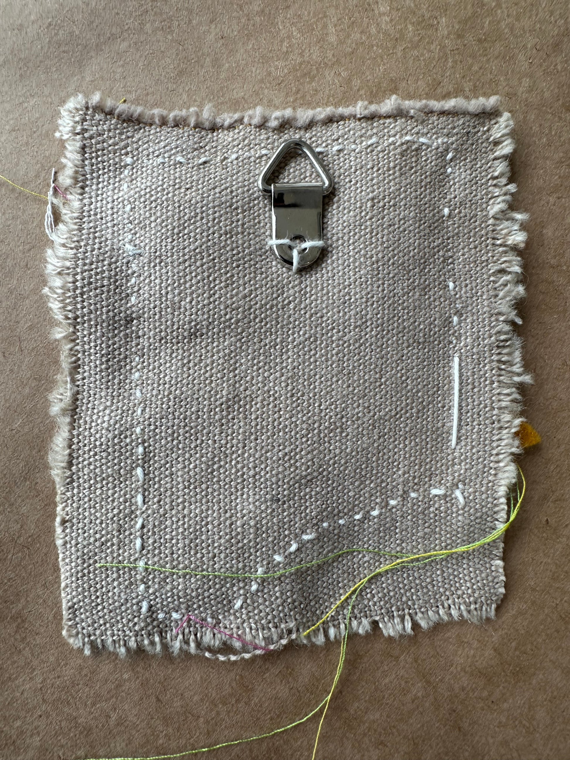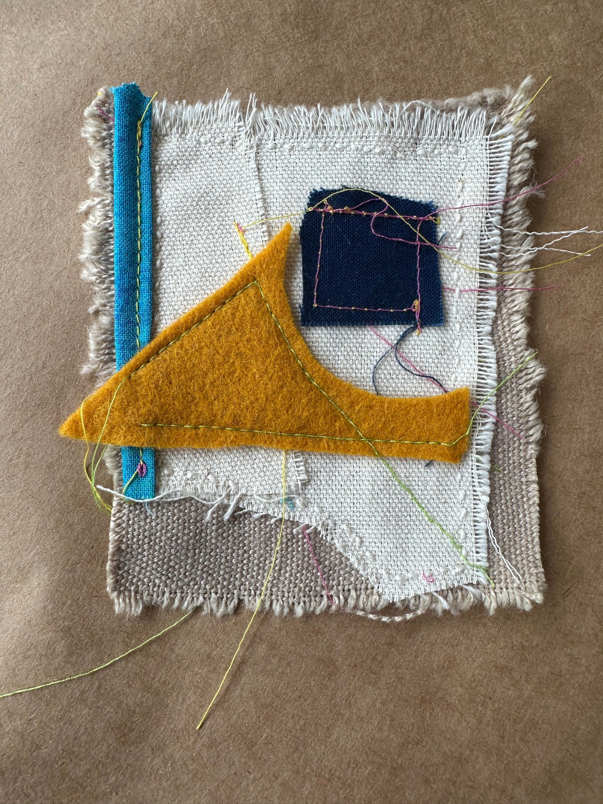 Happy Scrappy #30 Golden Wave, Linen, Cotton, Felt, & Thread Art, Small Original Art 4 x 4 inches.