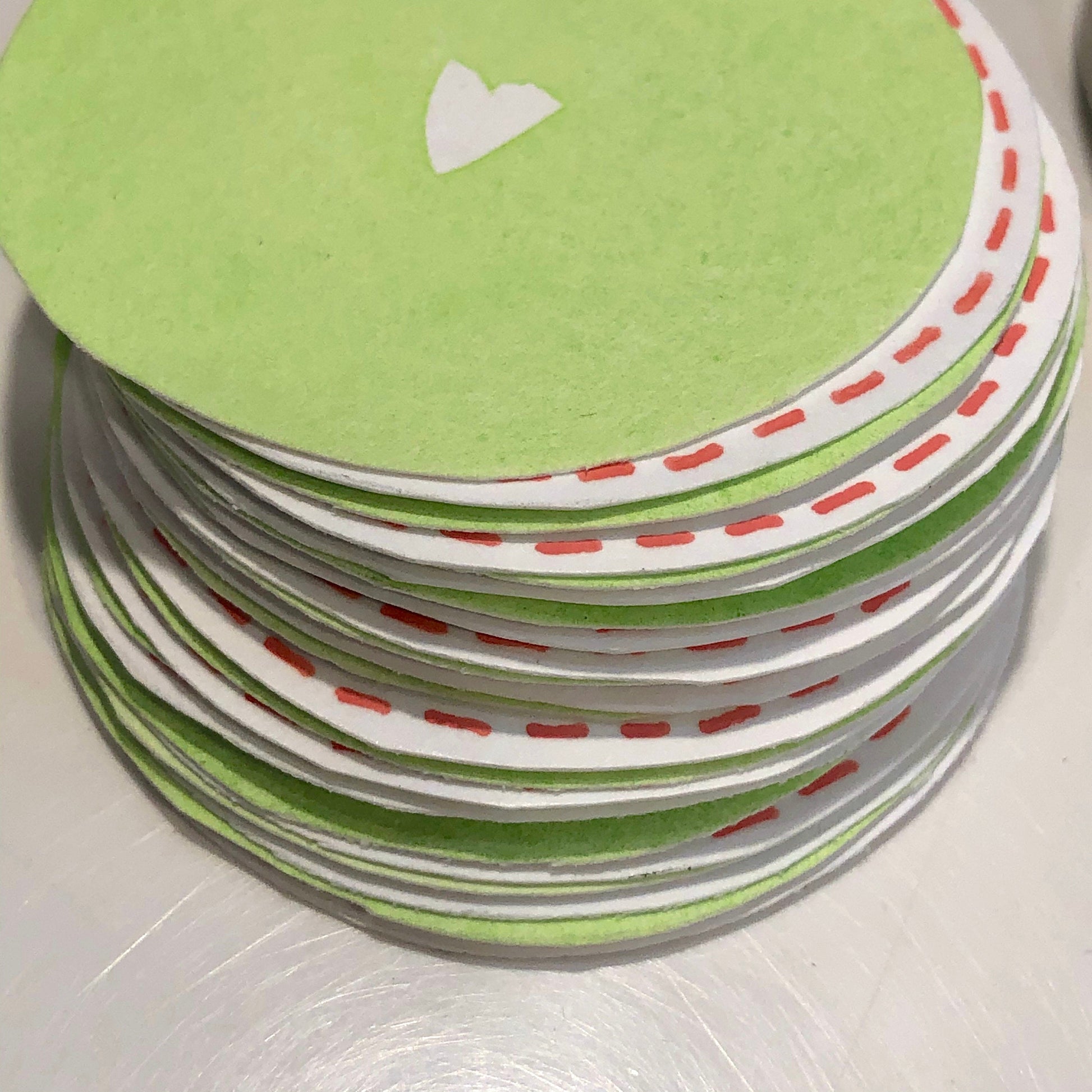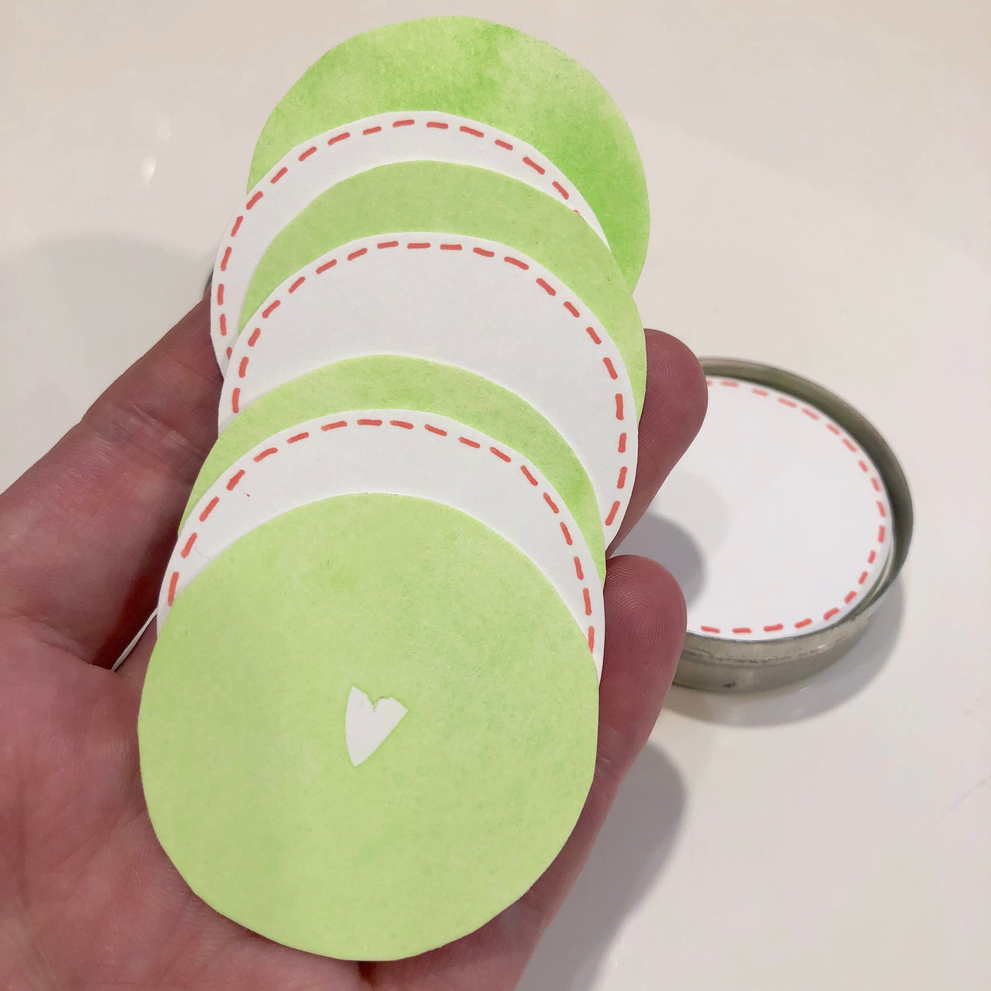 Mini Circular Tin filled with 24 pieces of hand-cut white Bristol paper.