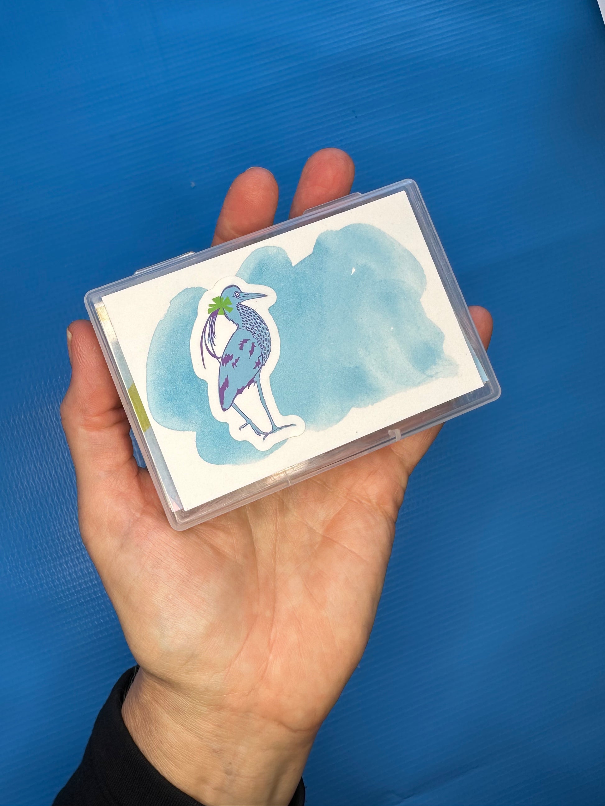 Each piece of paper is gently colored with a pink, blue & yellow watercolor wash. A little Sketchbook in it's own little box.