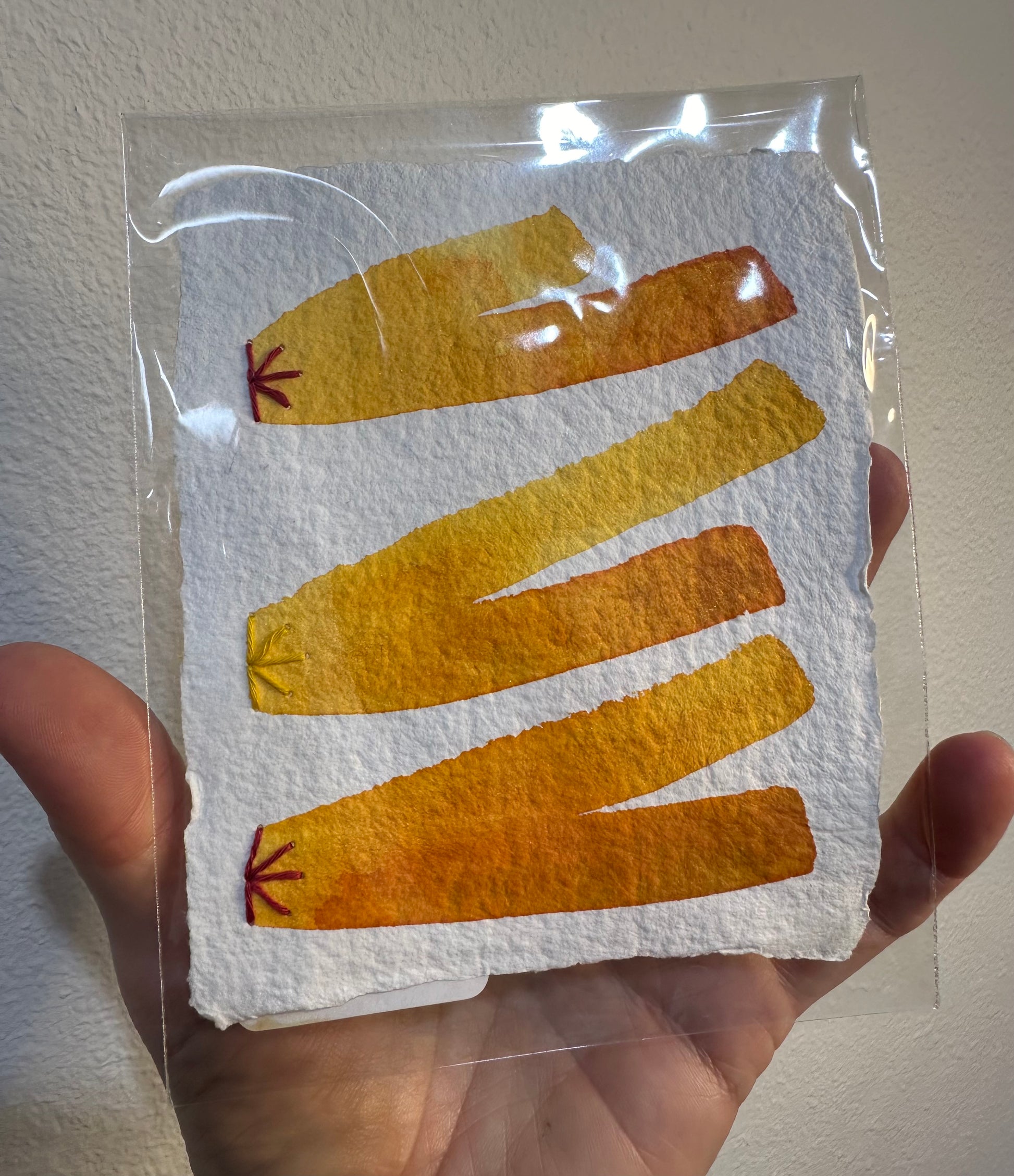 Stitch & So #46 Yoga Pants, 2024, Watercolor, Sashiko Thread, on paper. Collage Painting. One in a series of paintings called the Stitch & So Series. Original Art.